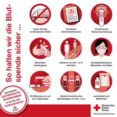 Sicherheit fängt grundsätzlich mit Informationen an – wer weiß, was zu beachten ist, wird für sich und andere Menschen nicht zu einem Risikofaktor. Deshalb informiert der DRK-Blutspendedienst West engmaschig über alle zur Verfügung stehenden Kommunikationskanäle. Wir wenden uns an die Öffentlichkeit, an Blutspender, Mitarbeiter und an das Ehrenamt.
