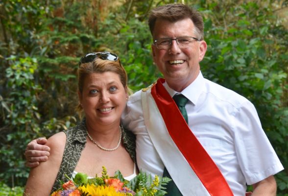 Mit dem 164. Schuss sicherte sich Stefan Fücker (55) am 6. Juli 2019 unter dem großem Jubel der zahlreichen Schützen und Besucher seine Anwartschaft auf den Titel des Schützenkönigs. Er war in diesem Jahr einziger Kandidat - und die glücklichsten Menschen an der Seite von Stefan waren Ehefrau Ursel (52), die beiden Kinder Julia (25) und Sven (22) sowie sein Scheibenschützenzug "He Simmer".